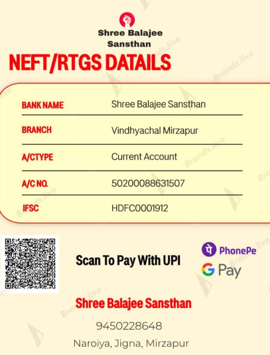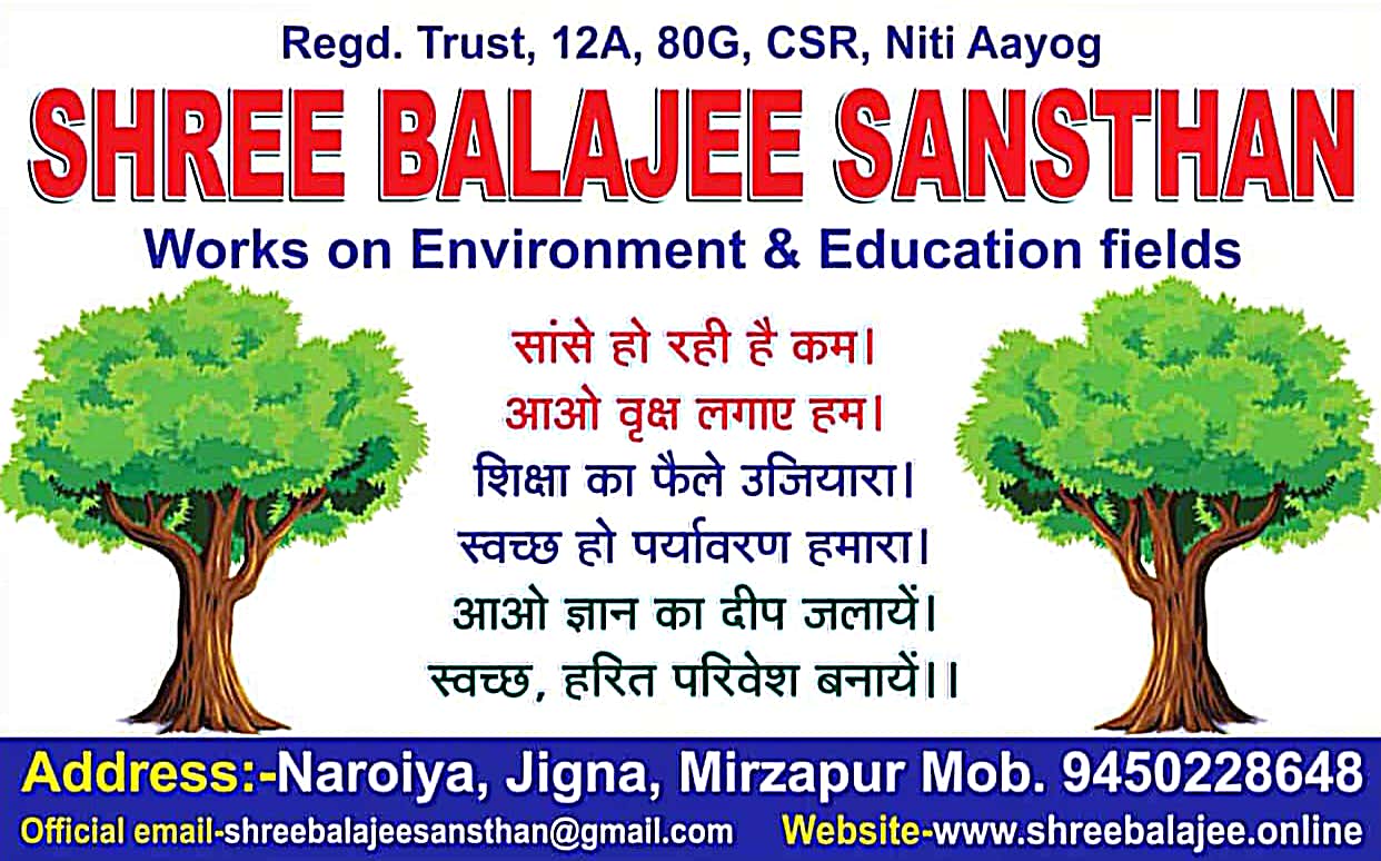 Who We Are Shree Balajee Sansthan is a non-profit organization committed to environmental conservation, education, healthcare. We have been working tirelessly to create a meaningful impact in communities by addressing pressing social and environmental challenges. Our Vision We envision a world where "every child has access to quality education," "no one goes to bed hungry," or "nature and humanity thrive in harmony". Through collaborative efforts, we aim to build a sustainable and equitable future for all. Our Mission Our mission is to Shree Balajee Sansthan, "empower underprivileged communities through education and skill development," "combat climate change through sustainable practices," . We believe that real change begins with action, and we are dedicated to making a difference. What We Do At Shree Balajee Sansthan, we run various programs and initiatives focused on: "Providing free education and learning materials to children in rural areas." "Promoting environmental sustainability through tree-planting and waste management initiatives." "Supporting women’s empowerment by providing vocational training and employment opportunities." Our Impact With the support of our volunteers, donors, and partners, we have: "Educated over 15,000 children in underserved communities." "Planted 100,000 trees to combat deforestation." "Provided clean drinking water to 5,000 families." "Trained 2,000 women in skills that help them achieve financial independence." Join Us in Making a Difference Whether you want to volunteer, donate, or partner with us, every contribution helps us bring positive change. Together, we can build a better future for all.